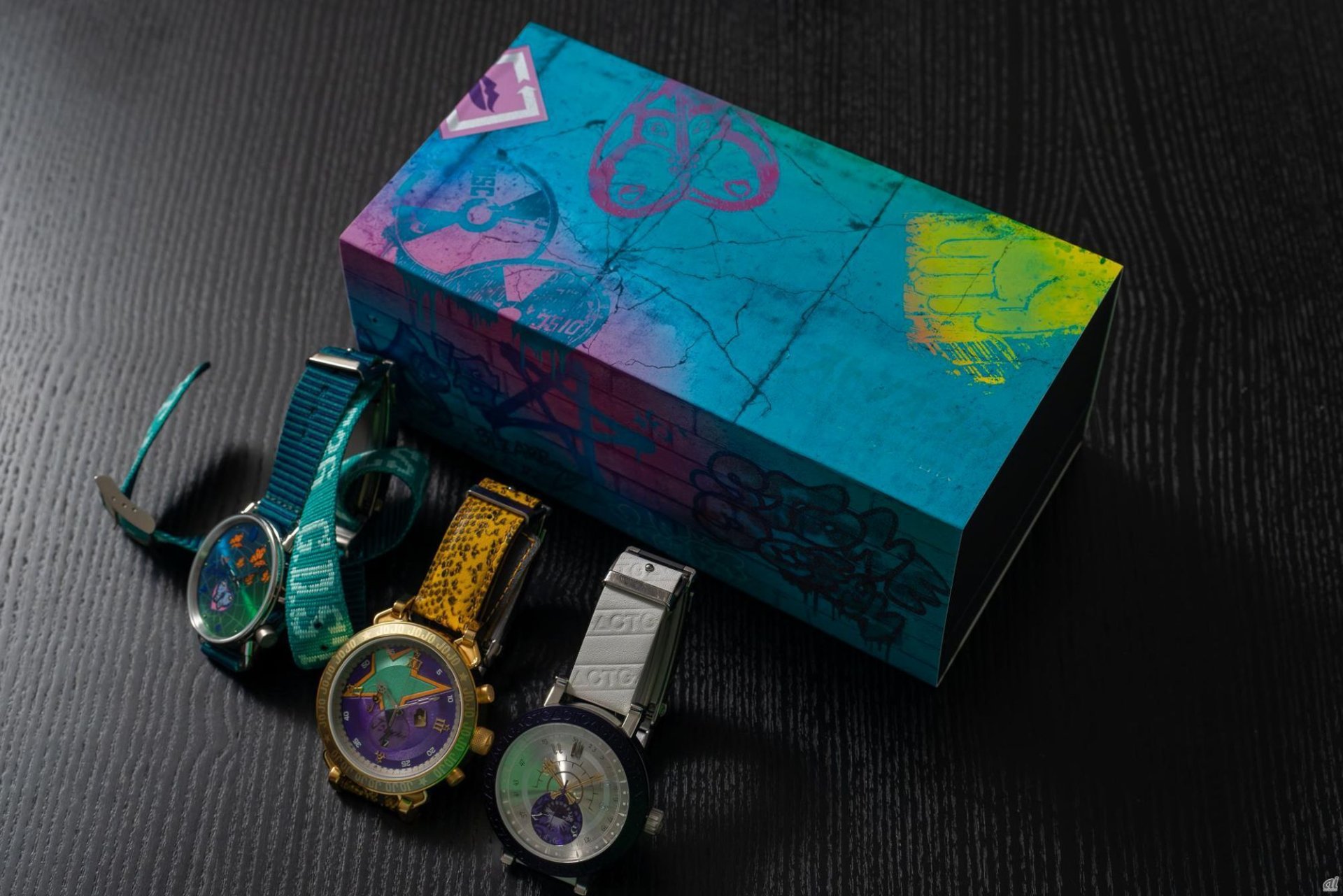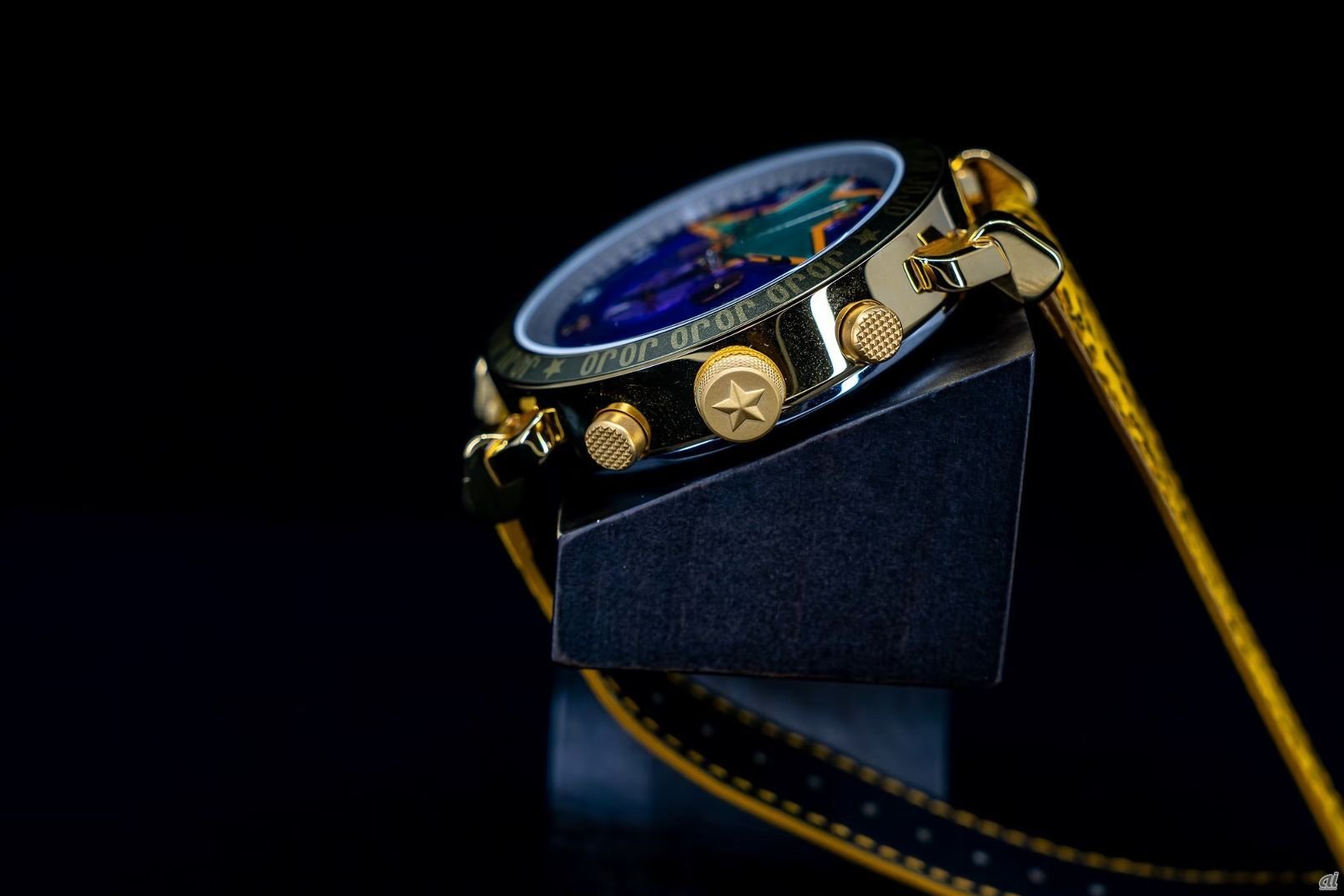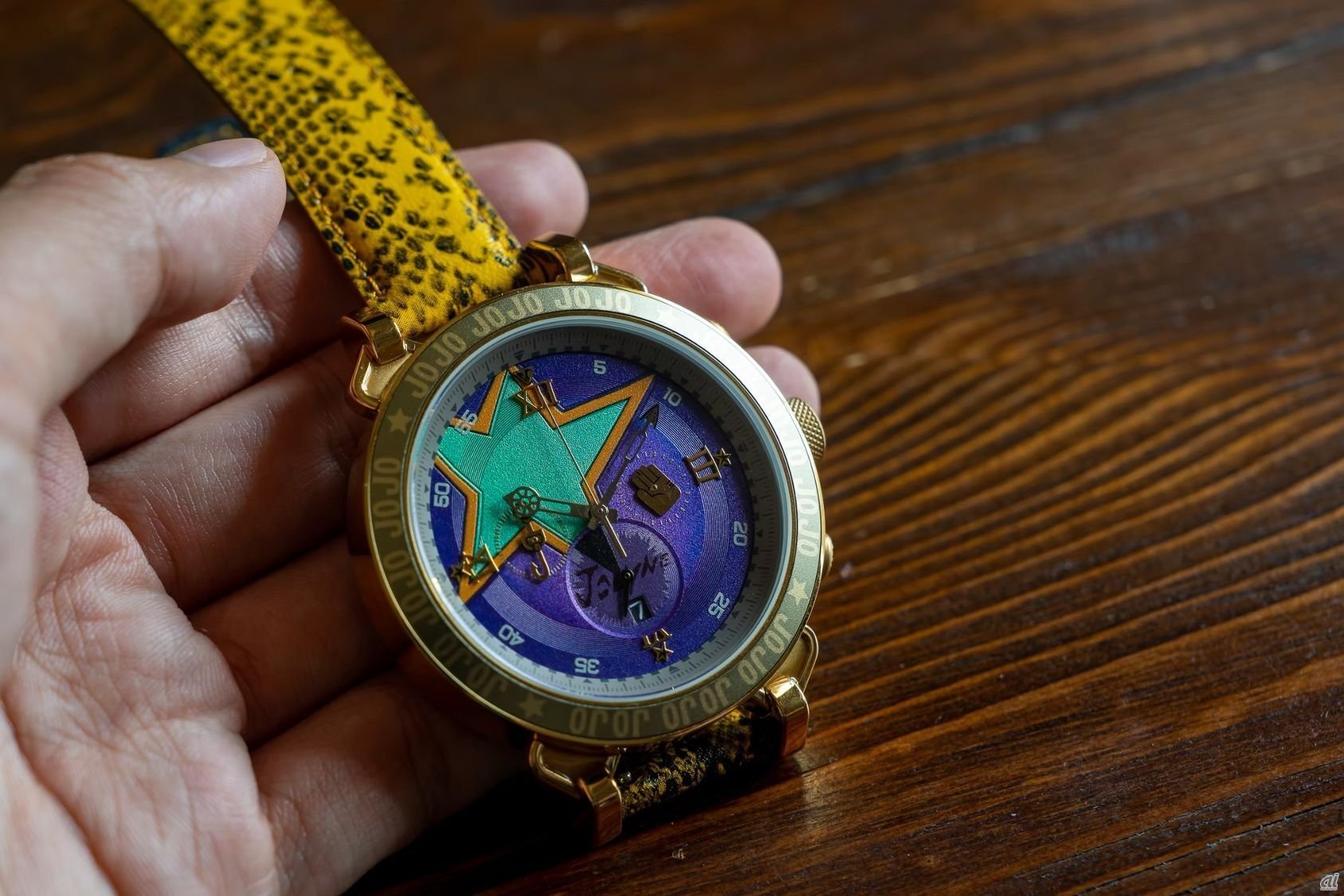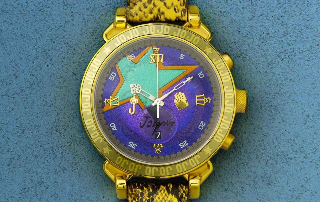 - หน้าปัทม์ มาพร้อมดาวโจสตาร์สีทองอยู่ที่เลข 3, 6, 9 ไอคอน "มือ" จากหมวก, ไอคอน "J พร้อมโซ่" ที่ติดบนคอเสื้อ